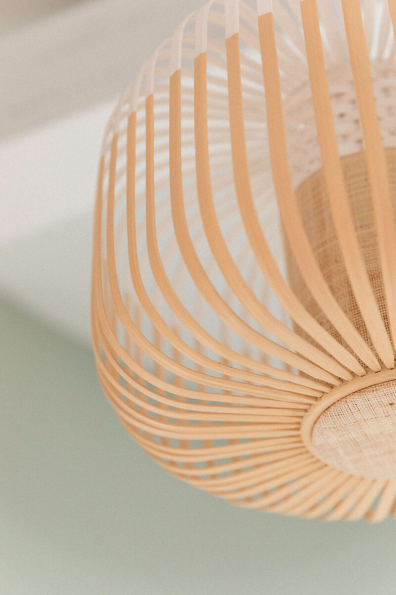 L’entrée, quant à elle, se pare de rideaux graphiques dissimulant l’escalier invités et la porte de service. Une alcôve centrale accueille une banquette avec miroir sur mesure pour faciliter l’enfilage des chaussures, faisant face à une console sculpturale sublimée par les appliques bijoux Ombre Portée.