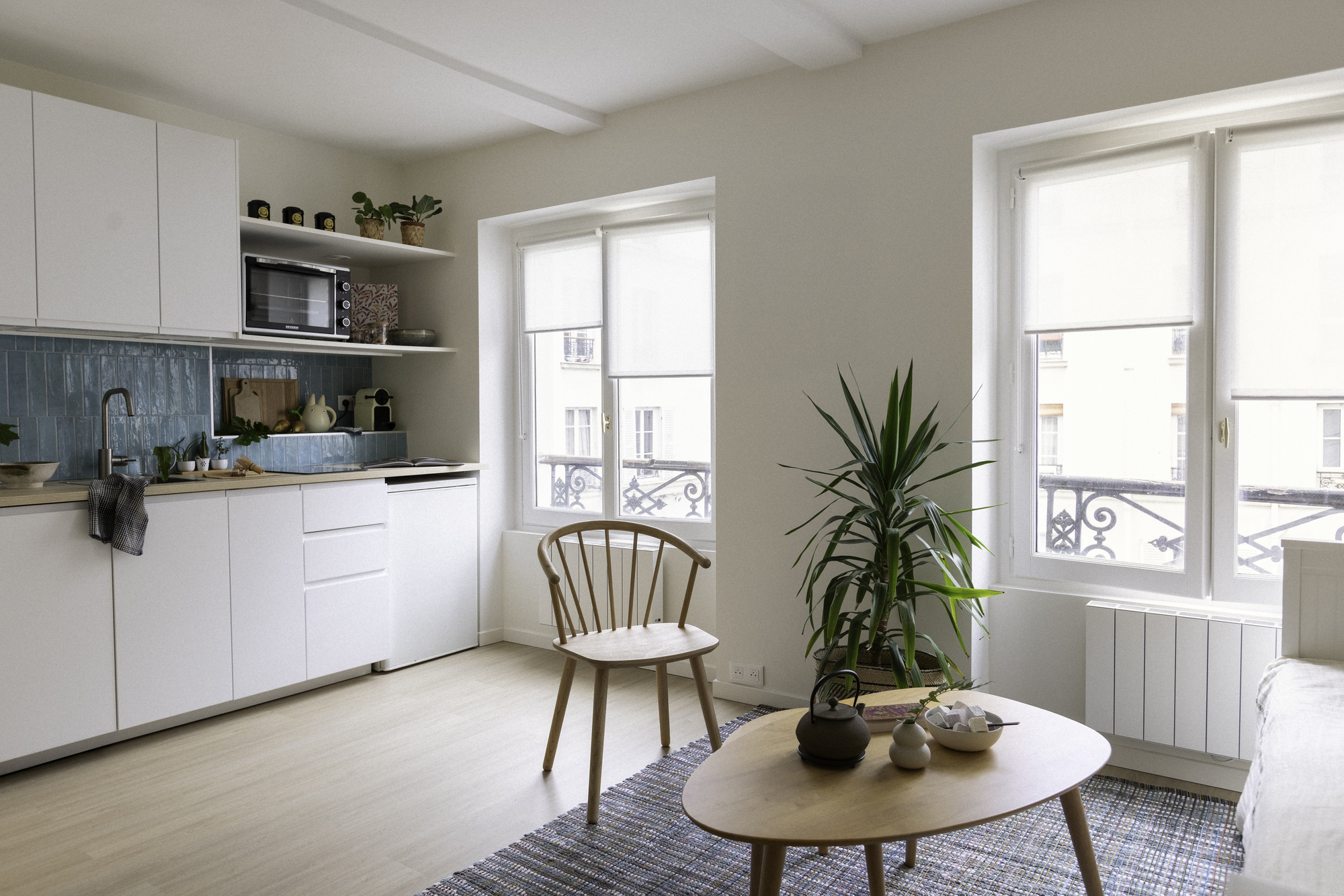 Ce studio de 20 m² situé près de la place Monge a été entièrement repensé afin d’optimiser chaque mètre carré, en conciliant fonctionnalité, lumière naturelle et esthétique japandi apaisante.